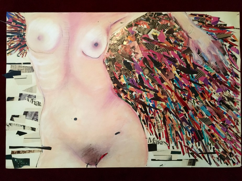 The college I attended taught strict, classical realism in a manor similar to Andrew Wyeth, a internationally recognized, regional superstar. I never quite nailed that, though I learned to look deeply at objects to understand the play of light that defines a textured surface. What I did discover was an affinity for line, the female form, atmospheric backgrounds and collage.